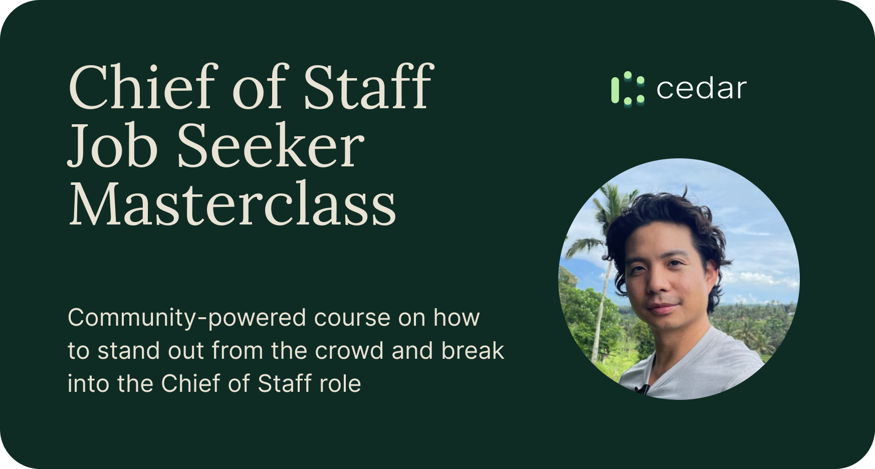 Breaking into the Chief of Staff role is really difficult! I've personally screened 1,000+ applicants and coached 50+ candidates on how to break through the noise and become an amazing Chief of Staff candidate.